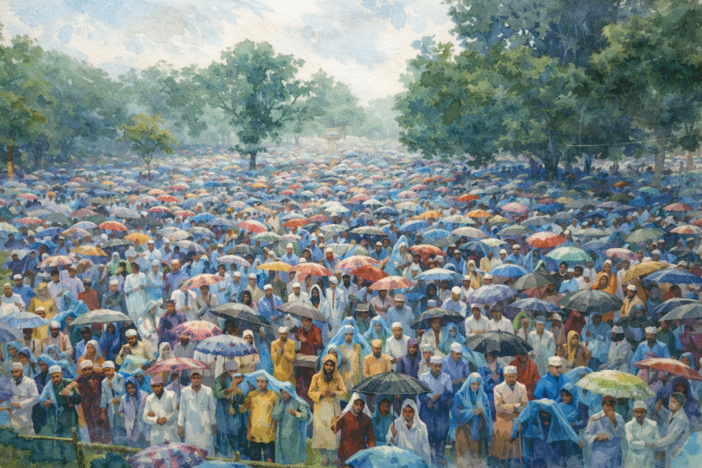 আনন্দে টইটম্বুর এক মাঠ। এক মাস রোজা রাখার পর সমবেত হন মুসল্লিরা। এখানে কয়েক লাখ মুসল্লি একসঙ্গে আদায় করেন ঈদের নামাজ। এদের কেউ স্থানীয়, কেউ আসেন দূর থেকে। মাঠের নাম